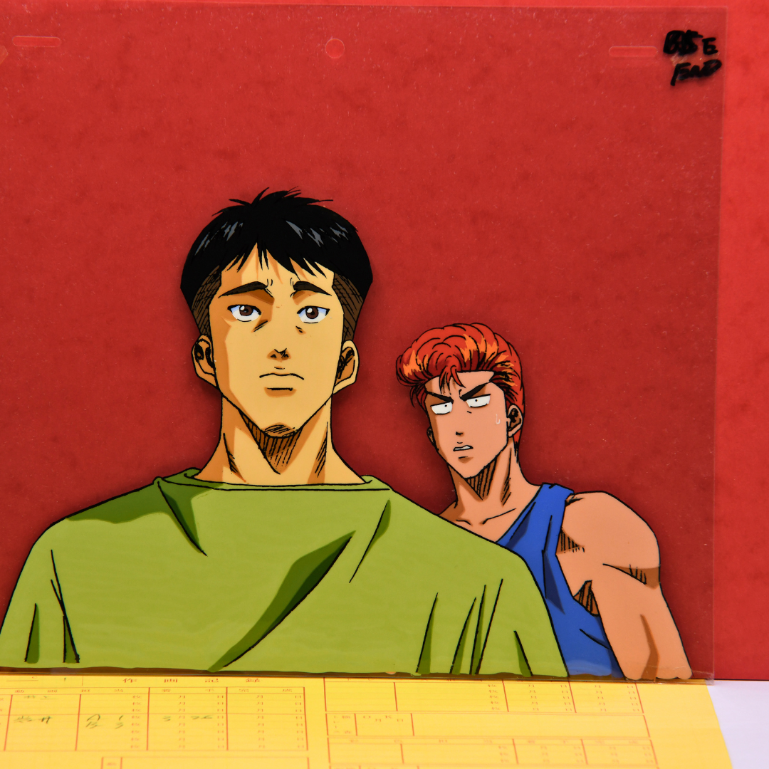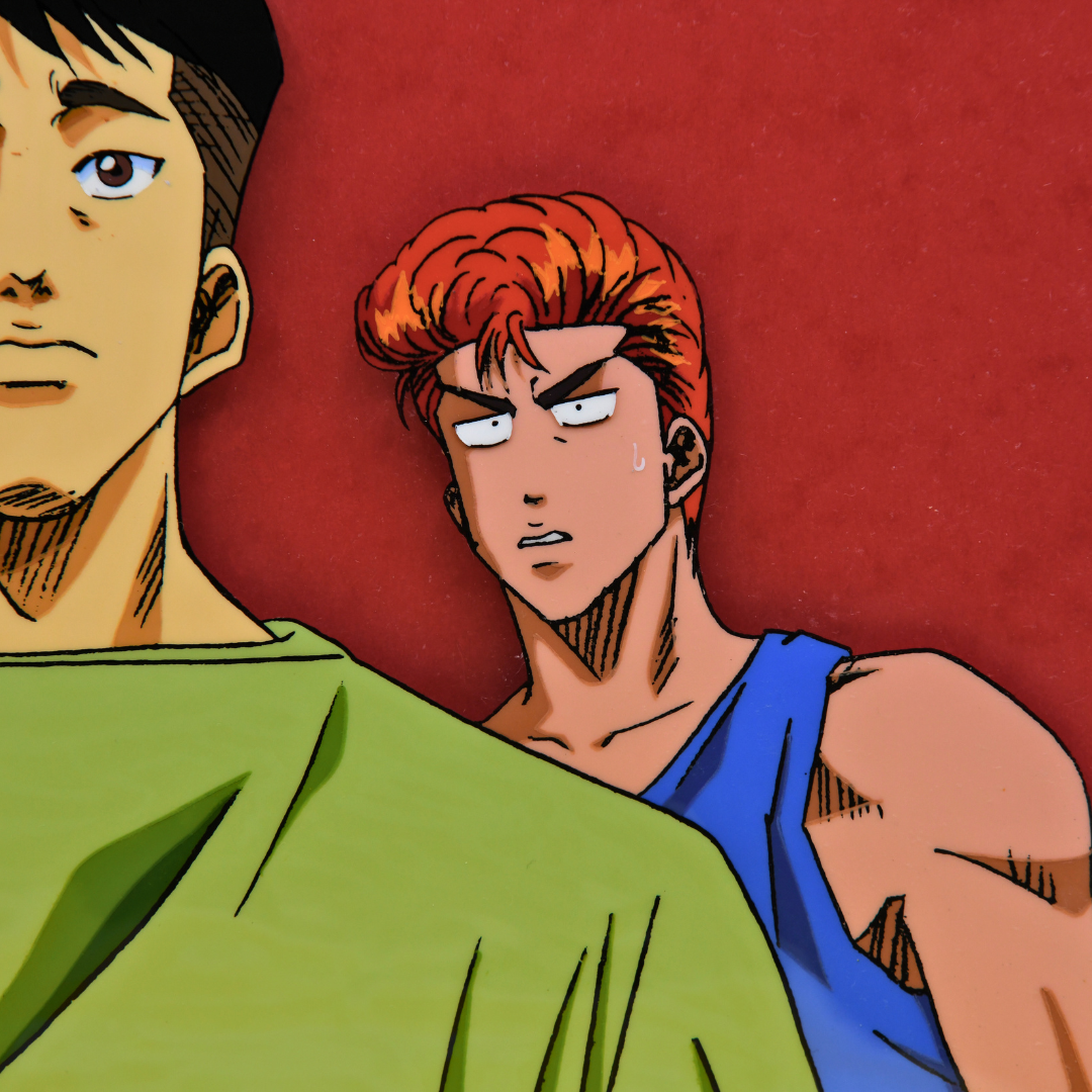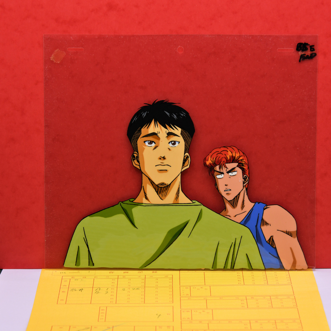 This rare gem from Slam Dunk features original production cels of both Sakuragi Hanamichi, the rebellious yet lovable protagonist, and Yasuharu Yasuda, his dedicated teammate.