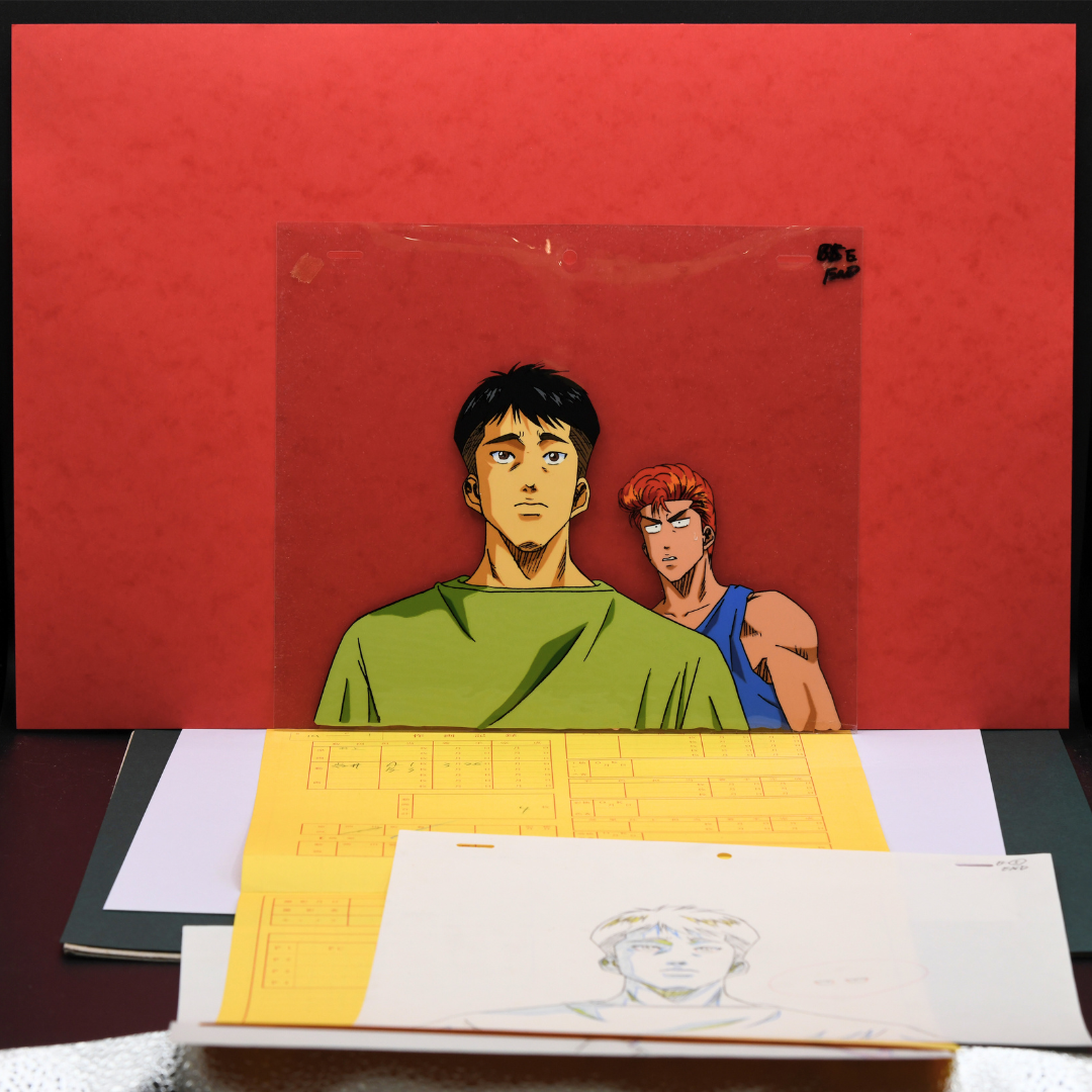 Slam Dunk - Sakuragi Hanamich and Yasuharu Yasuda - Original Production Anime Cels (2 Layers)+ 2 Dougas + Studio Shot List
