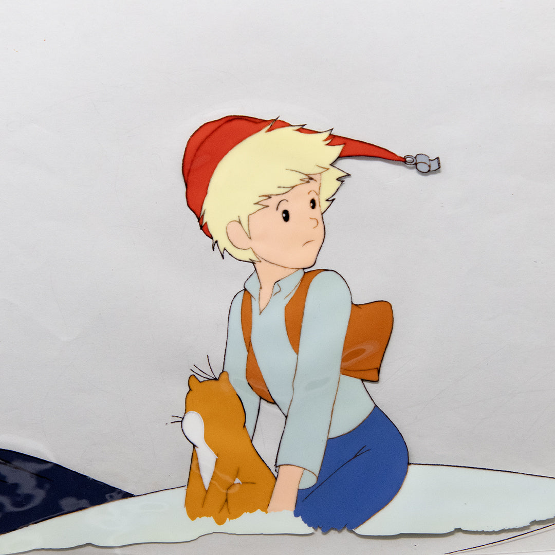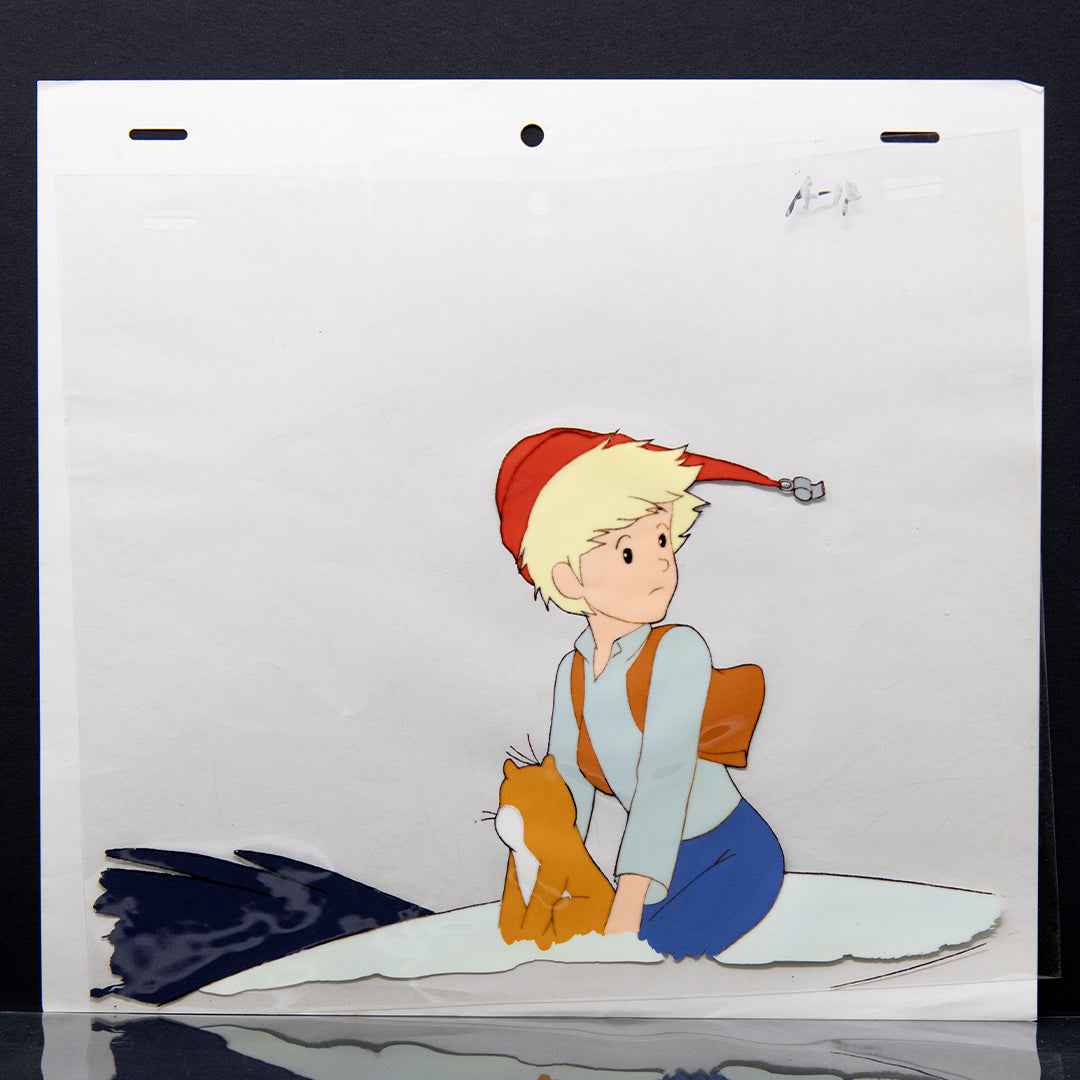 Dive into the enchanting world of 'Nils Holgersson' with this original production cel and douga set, capturing the diverse cast of characters from the beloved anime adaptation of Selma Lagerlöf's classic novel, 'The Wonderful Adventures of Nils.'
