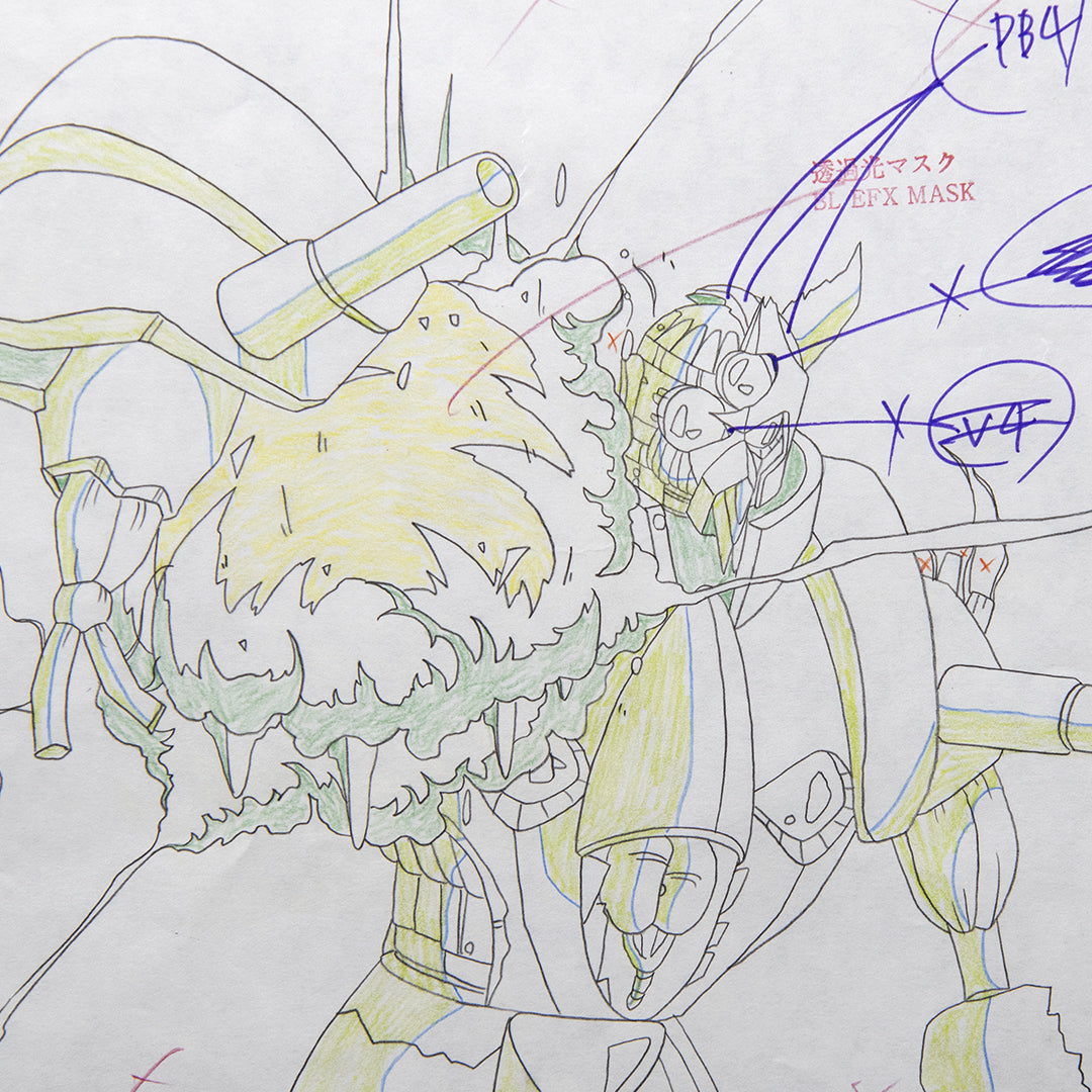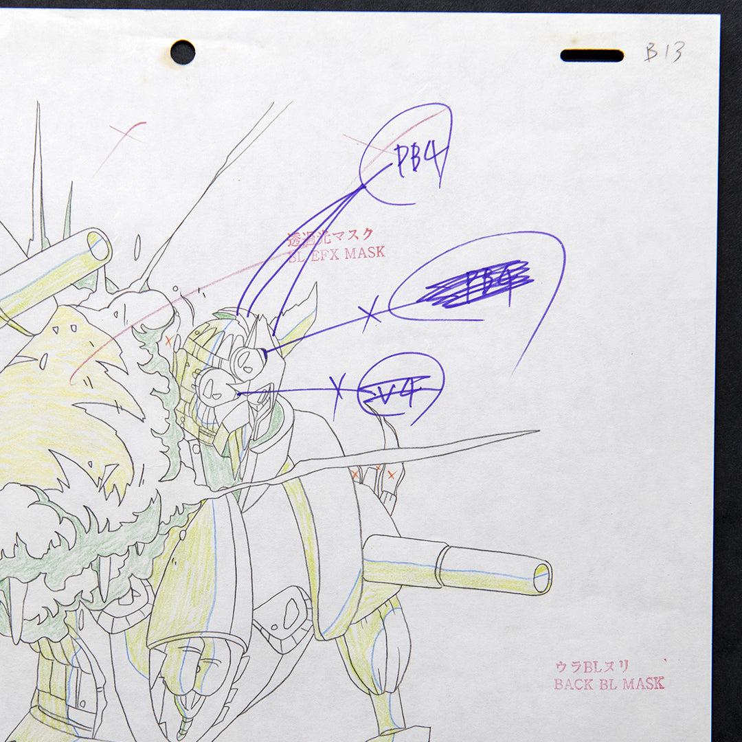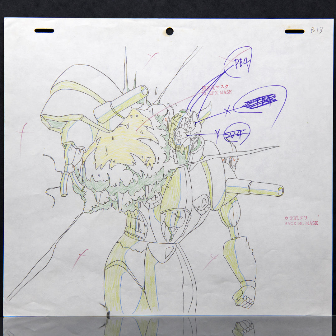 Own a piece of anime history with this original production douga from "Super Bikkuriman"! This dynamic artwork captures an explosive moment from the third anime in the Bikkuriman series. With action-packed scenes and fantastical elements, "Super Bikkuriman" takes viewers on a thrilling journey through a world of angels, demons, and science fiction.