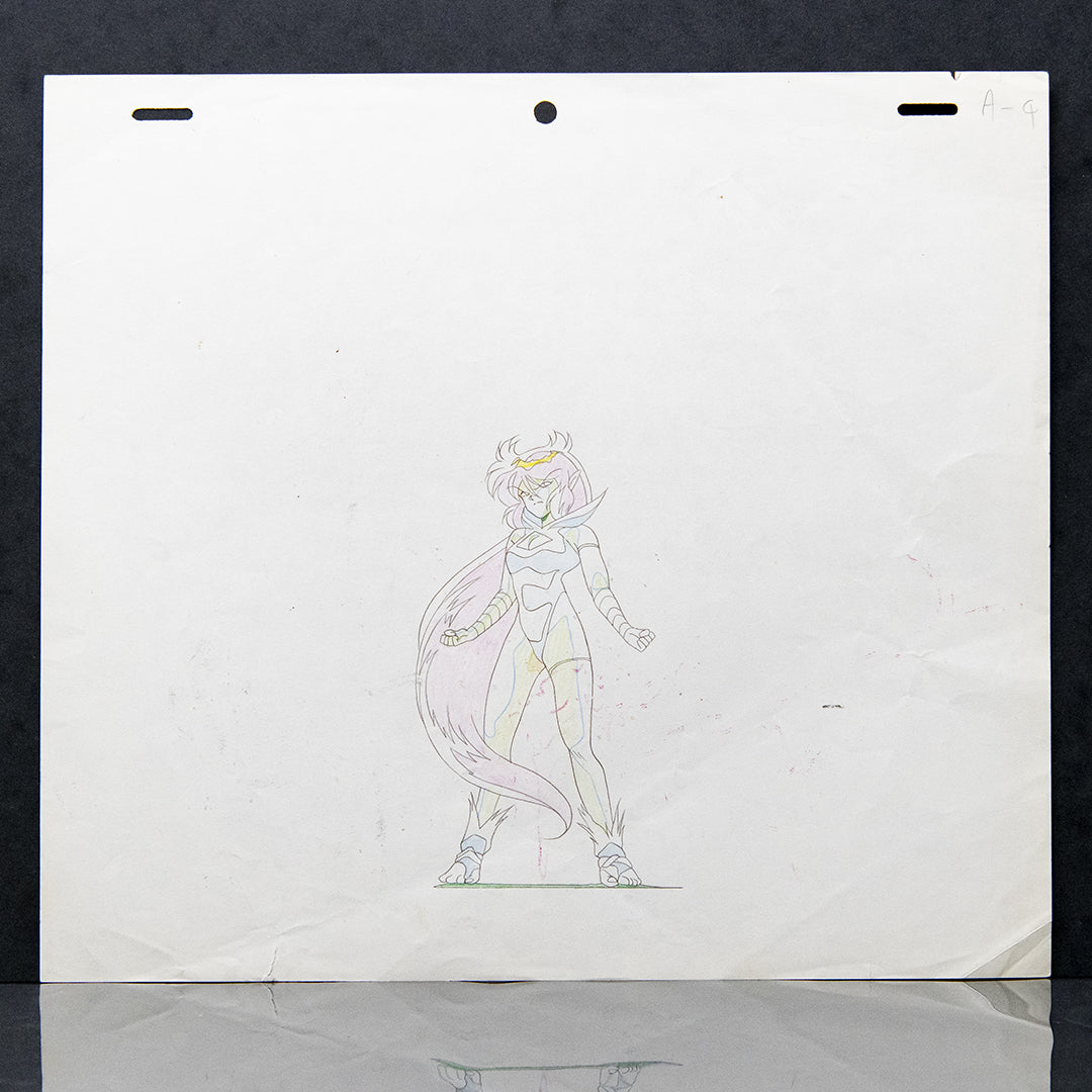 Step into the shadowy world of Demon Hunter Makaryuudo with this original production cel anime, featuring Yama Rikudou the main character, in a beautiful pose. Adapted from the 80's manga by Keukegen, Studio Fantasia's 1989 OVA, directed by Yukio Okamoto, brings this gripping tale to life with vivid animation and intense storytelling. This artwork captures the essence of the series' dark aesthetic, inviting viewers to immerse themselves in its suspenseful narrative and supernatural battles.