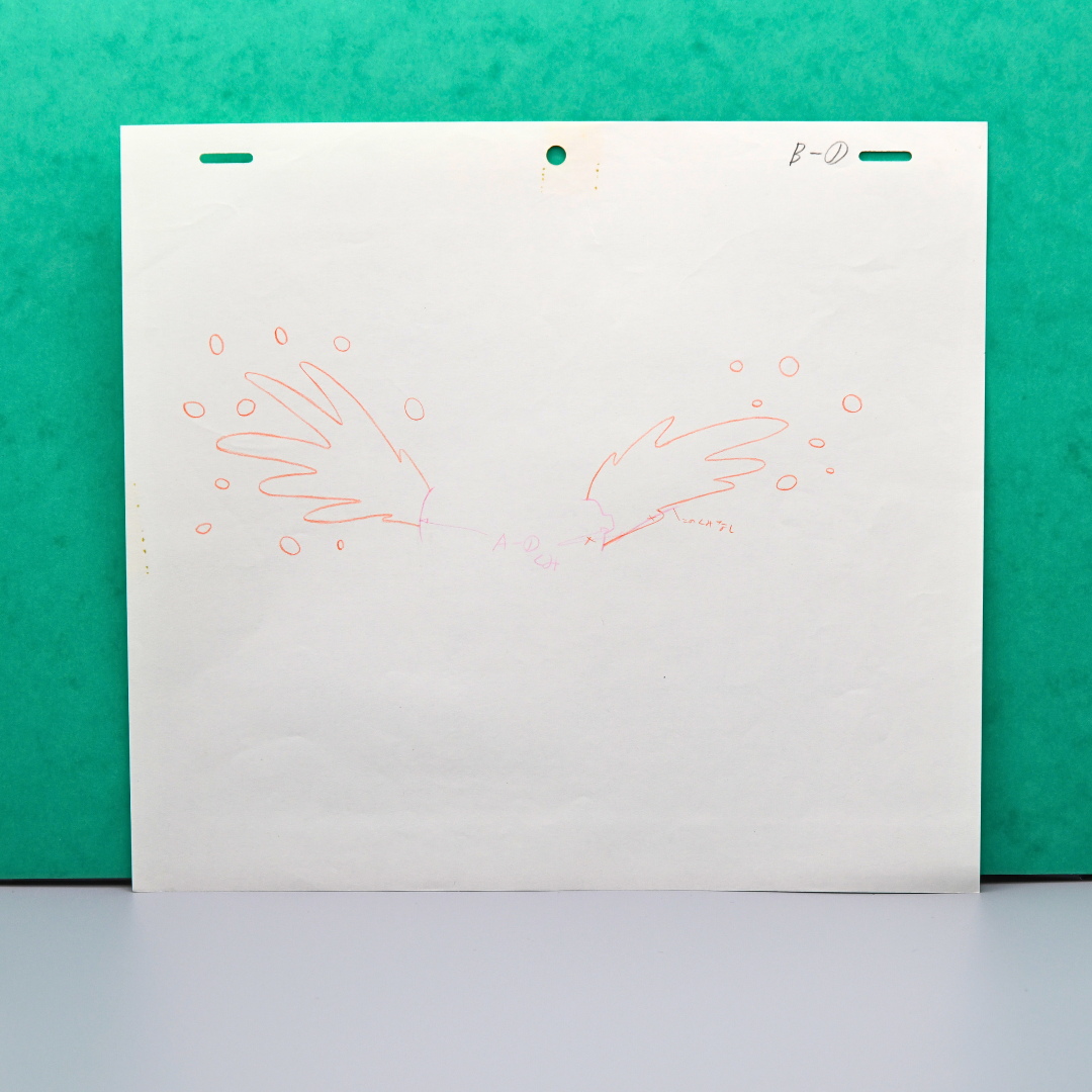 Senbei’s wide-eyed fury, ornate costume, and exaggerated posture epitomize the surreal, comedic tone of Dr. Slump. The cel comes with a matching douga, featuring explosive action lines and expressive particles.