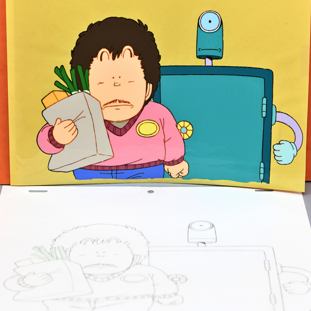 Dr. Slump – Senbei with Robot Safe Back from Grocery Scene Production Cel (Toei Animation, 1981–1986)