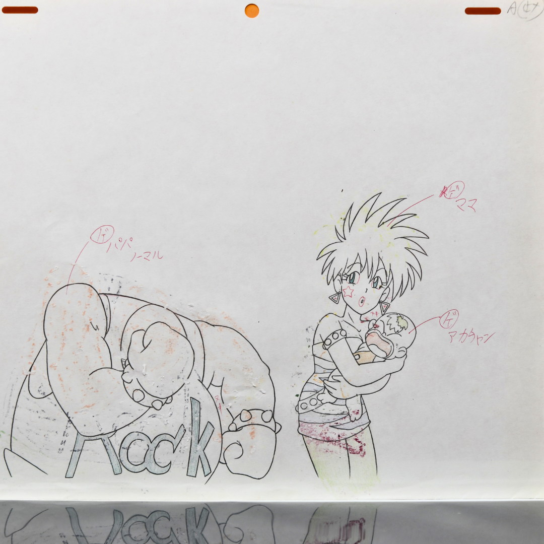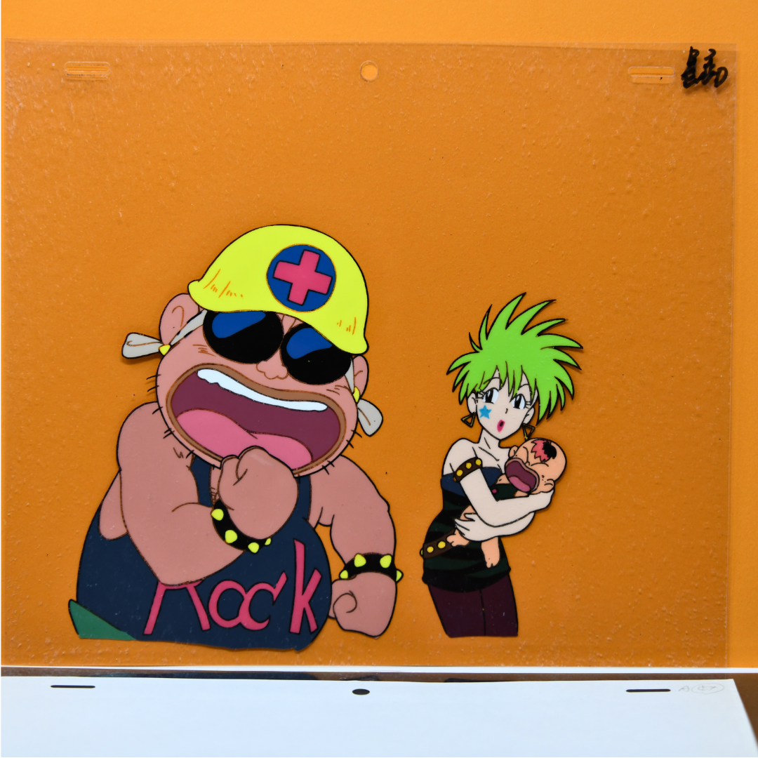 Eddoko Boy Gatten Tasuke - Punk with baby + Vilain Character with Helmet - Original Production Cel + Douga