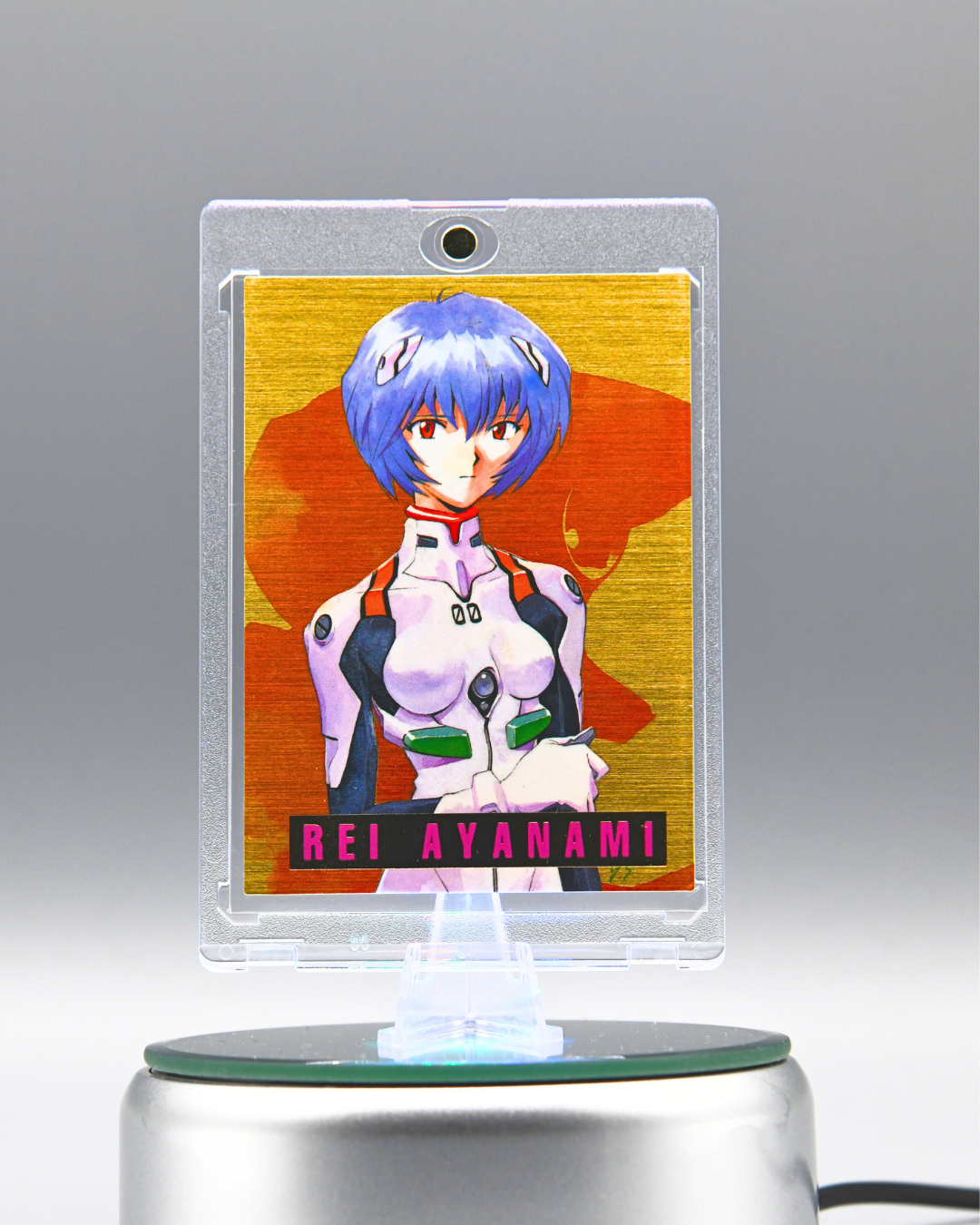 Rare Evangelion collectible featuring Rei Ayanami, the iconic character from the legendary series, with a stunning gold-foil finish.
