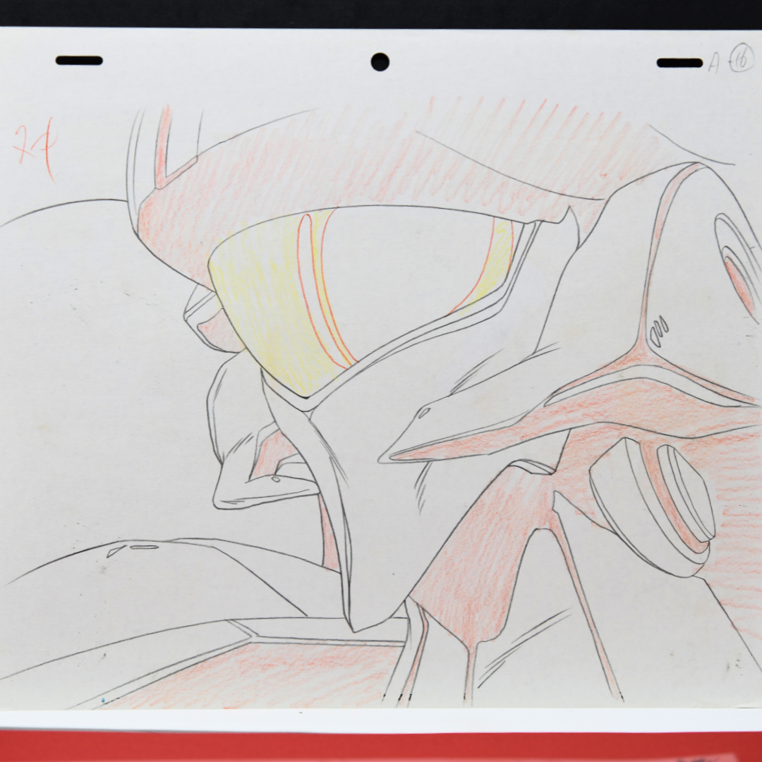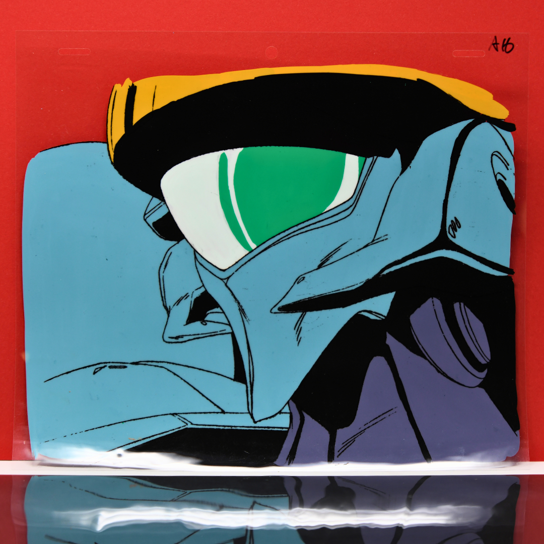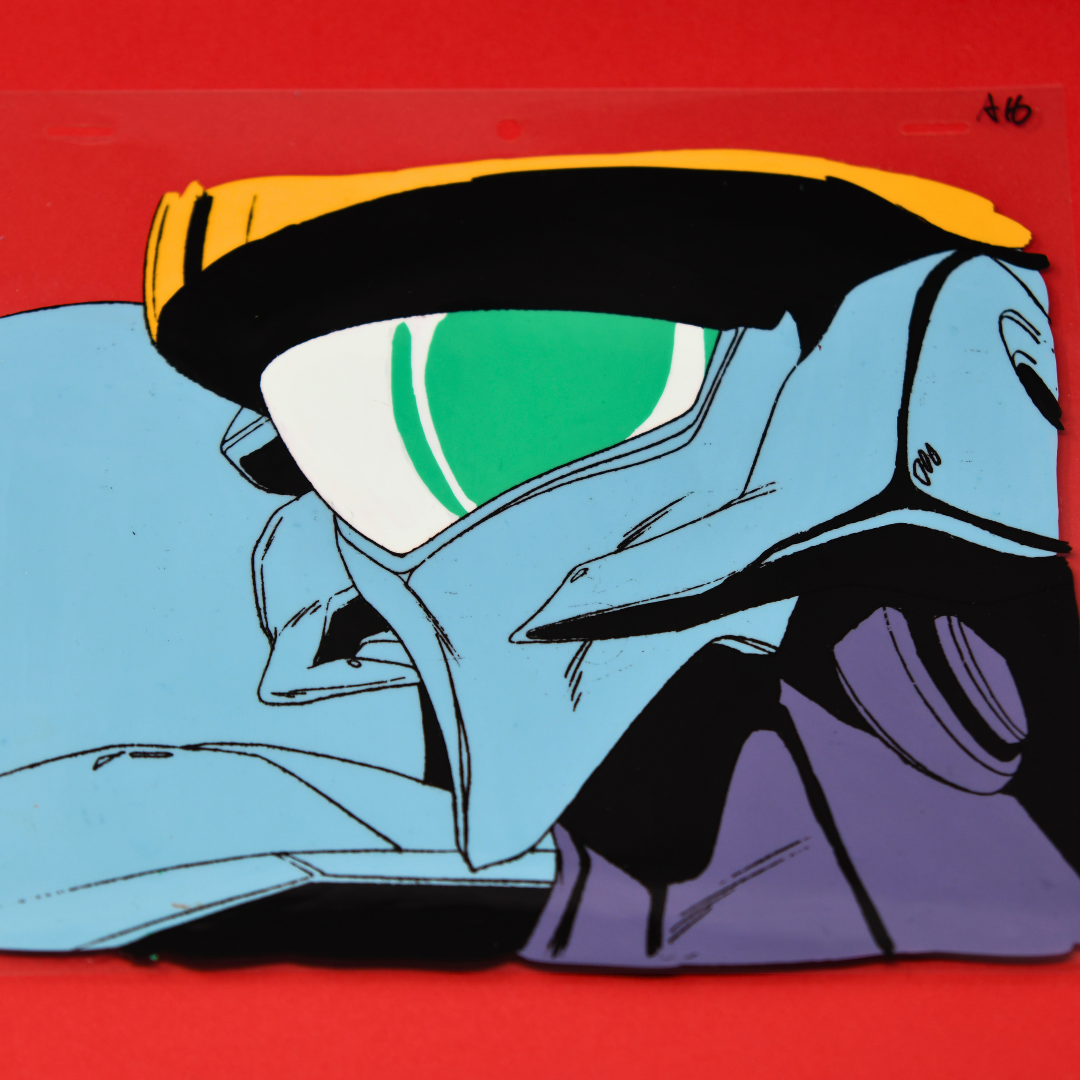 This compelling cel captures the Mecha Warrior's detailed features with remarkable precision, highlighting the fusion of mechanical and organic elements that made Go Nagai's designs so influential in the mecha genre. The accompanying douga reveals the complex linework and technical draftsmanship behind bringing these intricate designs to animated life.