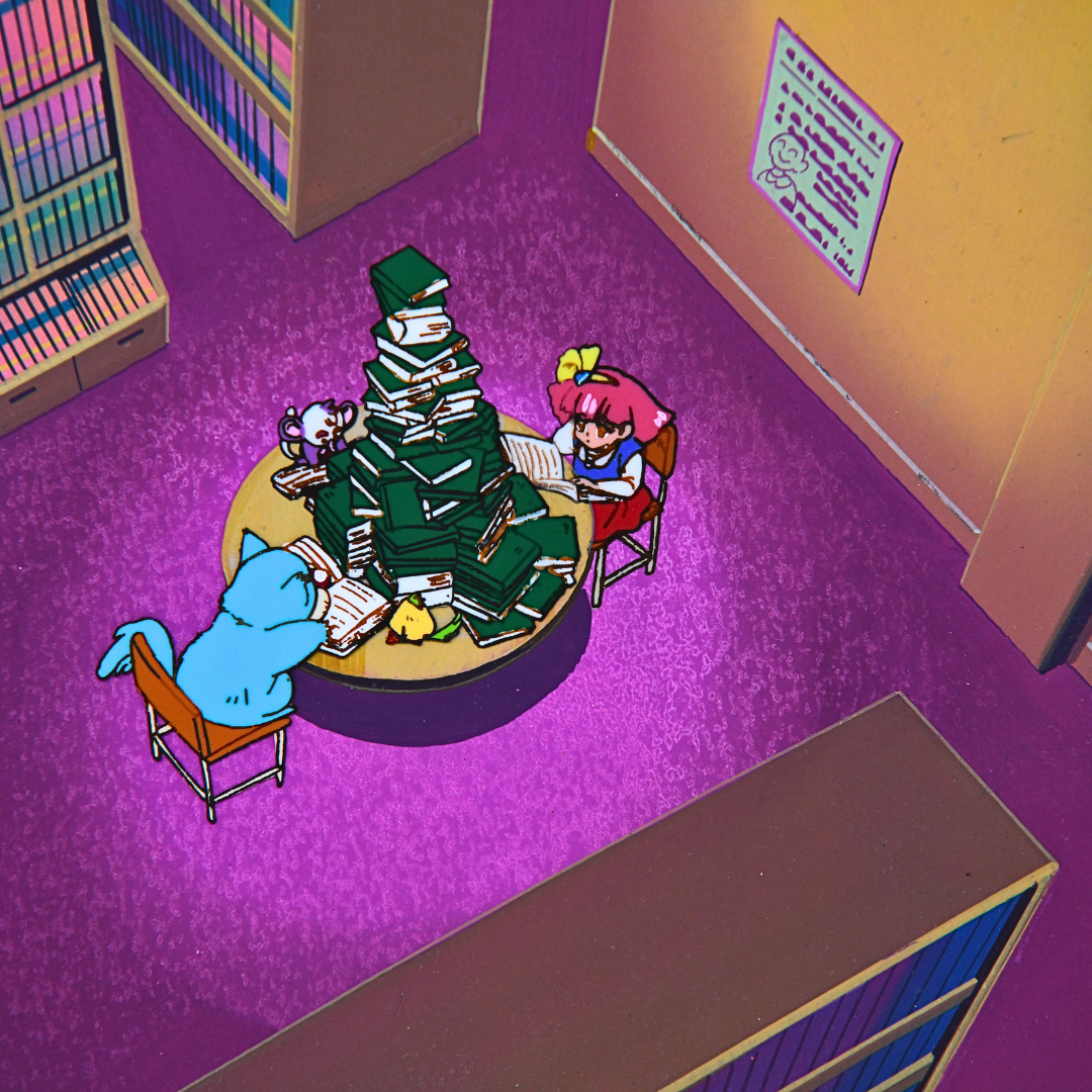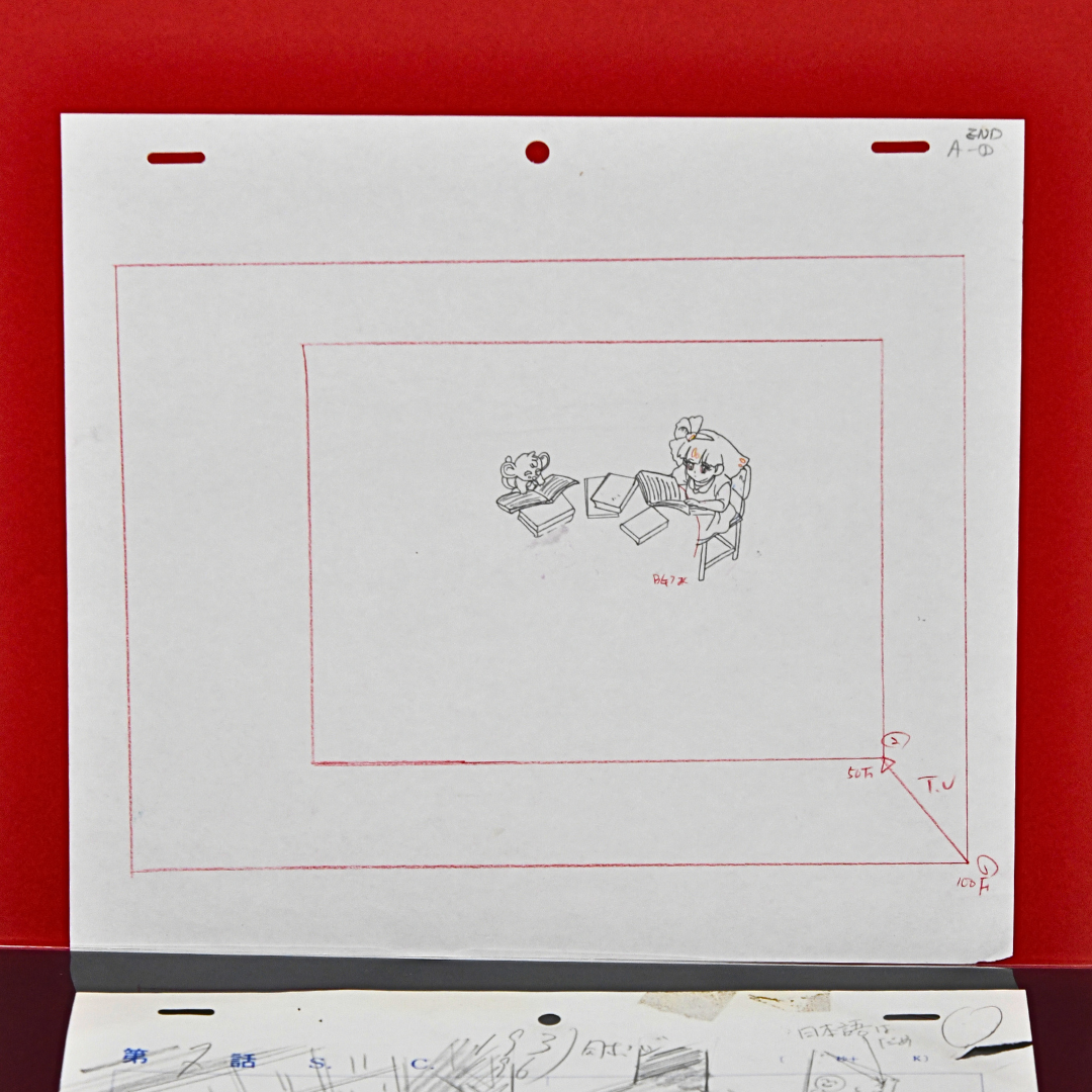 Magical Princess Minky Momo - Gigi + friends at the library - Production Cel + Gengas + Original Background