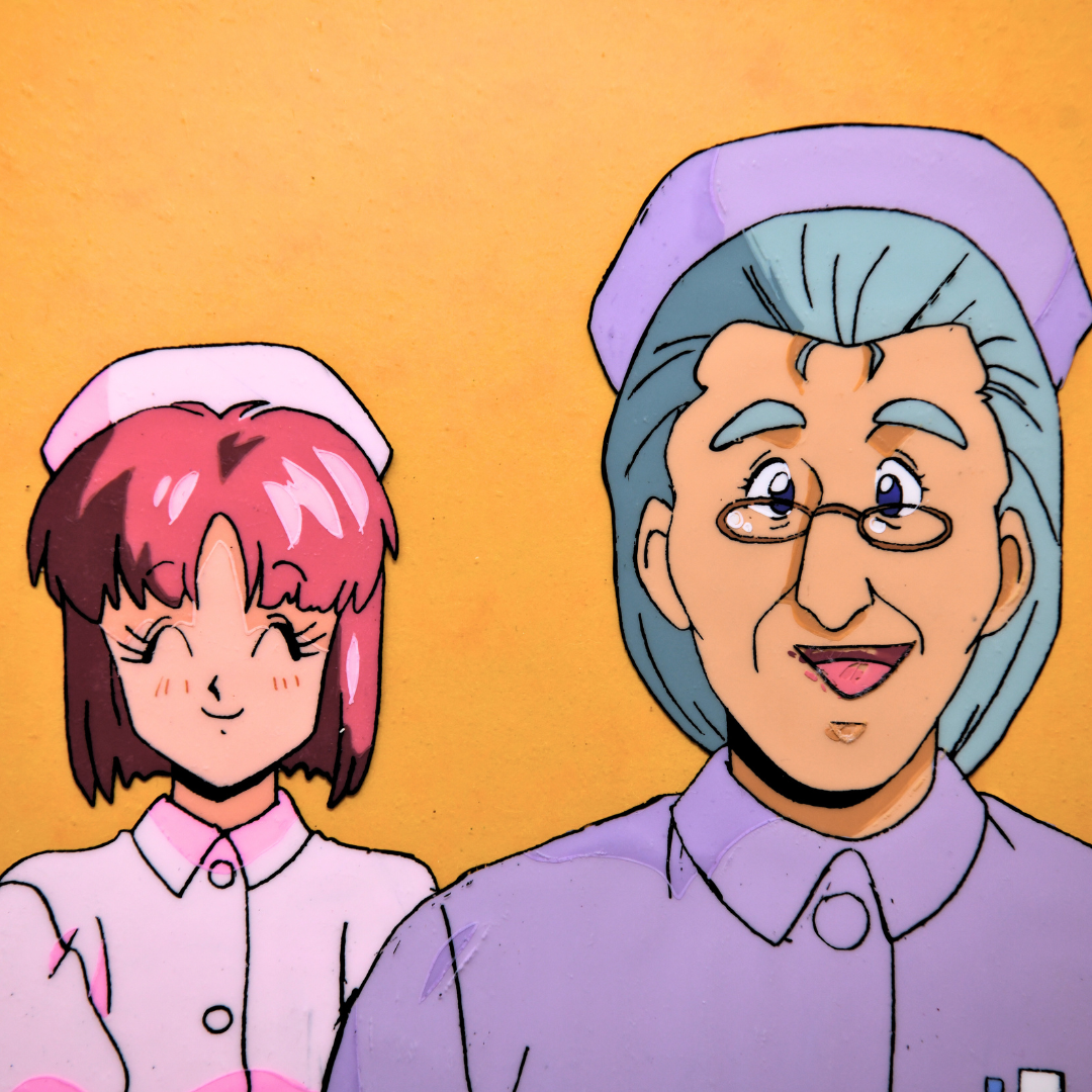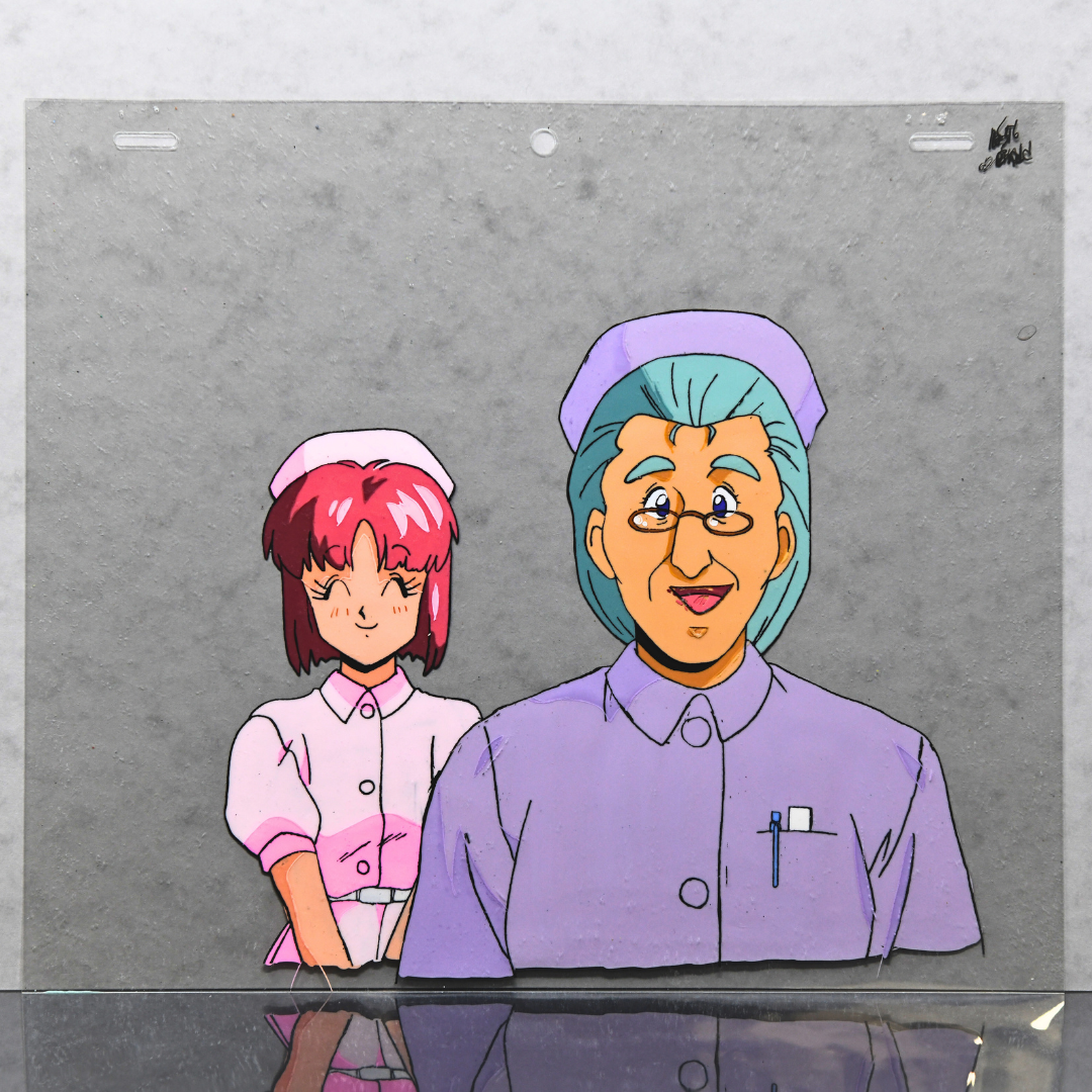 This rare production set from Magical Princess Minky Momo: Hold on to Your Dreams features Gigi in her nurse form, showcasing two attached cels and matching dougas.