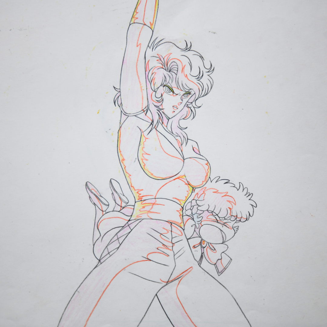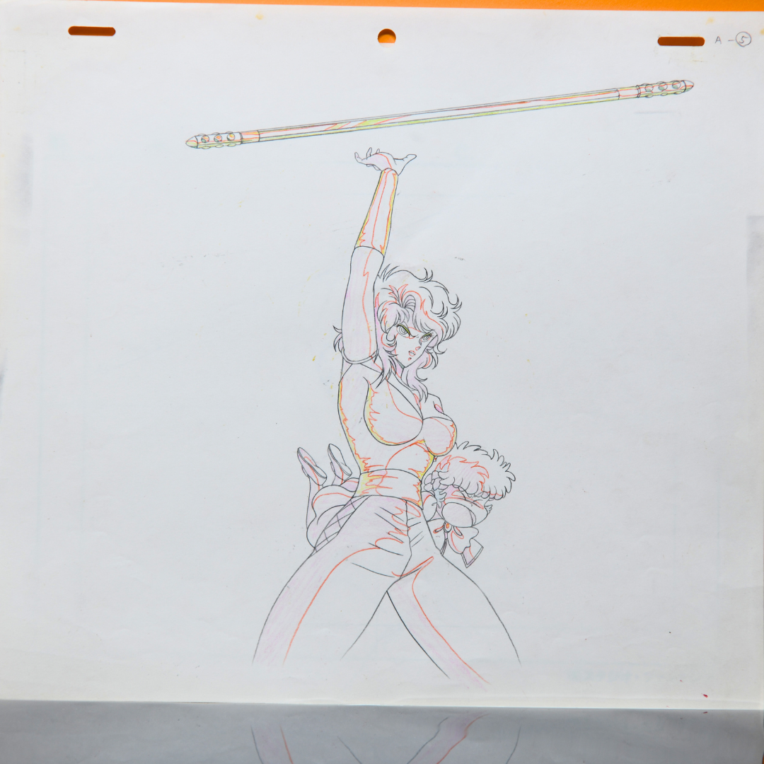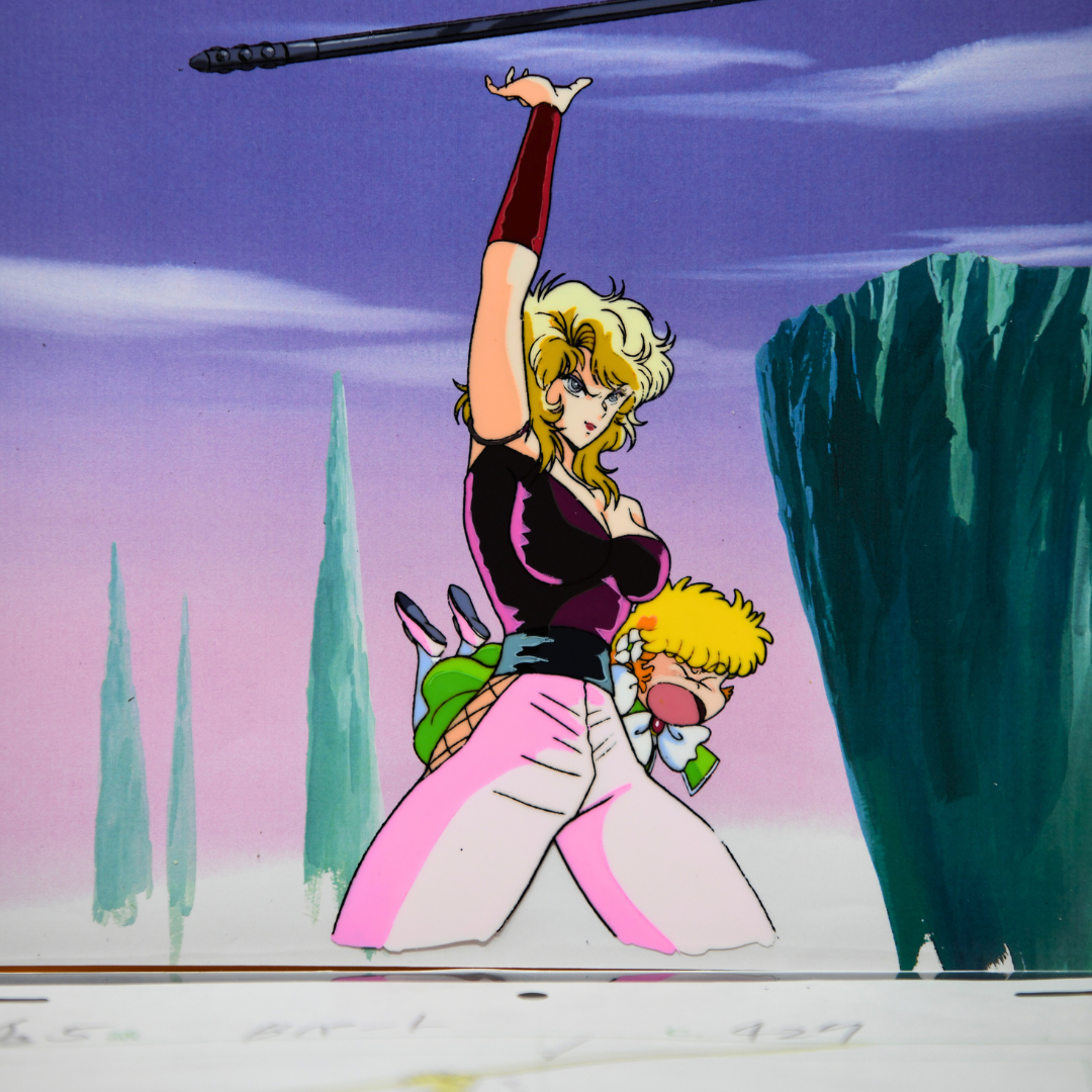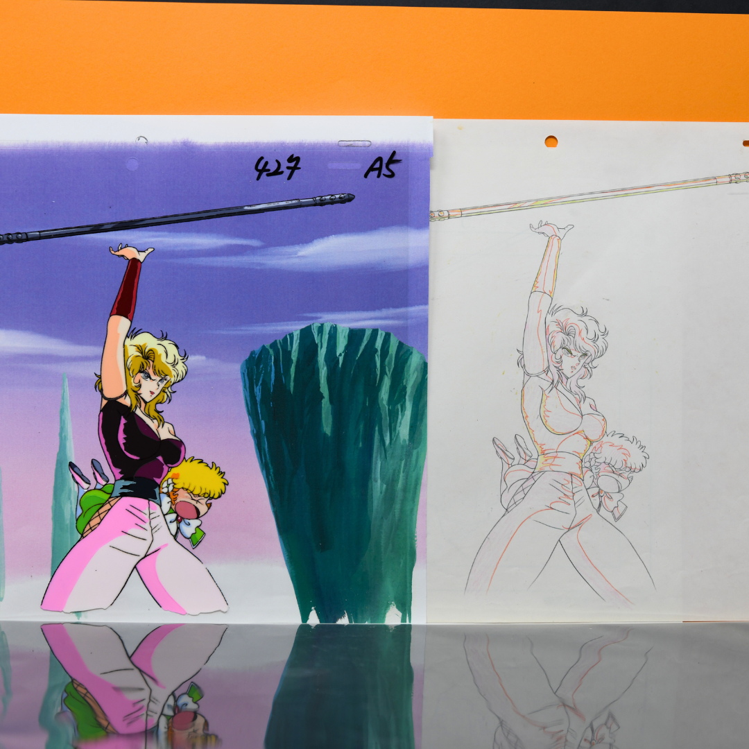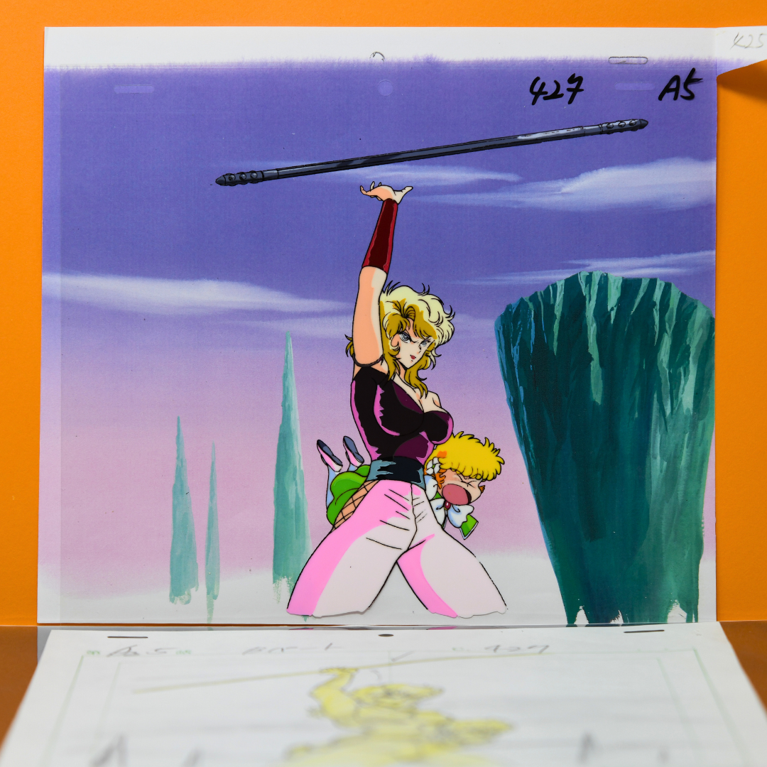 Project A-Ko The Versus - Liza holding C-ko Kotobuki - Heroic Pose - Original Production Cel Anime + Douga + Storyboard +BG
