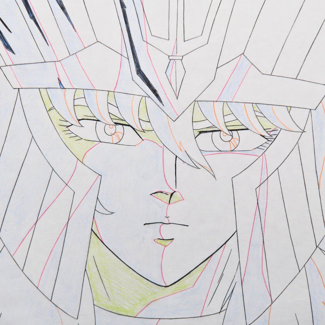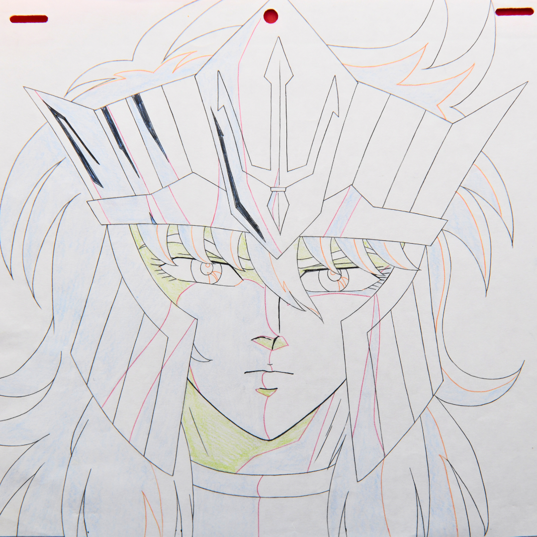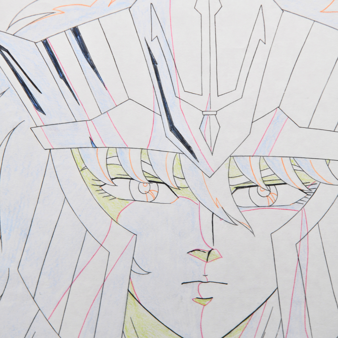 Accompanied by the original douga and background, this piece stands out for its rarity and emotional impact, capturing a defining moment in one of Saint Seiya’s most intense battles—an essential find for collectors.