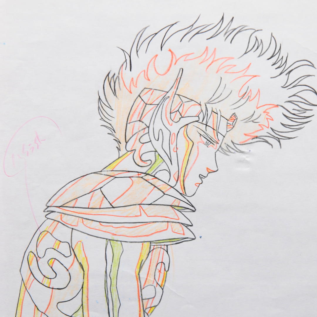For this douga inspired by the artistic style of Toulouse-Lautrec, the Crystal Saint is imagined with a unique flair, taking visual cues from Lautrec's iconic use of bold outlines and expressive forms. Although the character does not appear in the original Saint Seiya manga, this interpretation brings a more theatrical and dramatic vibe to the Saint’s profile, much like Lautrec’s famous portraits.