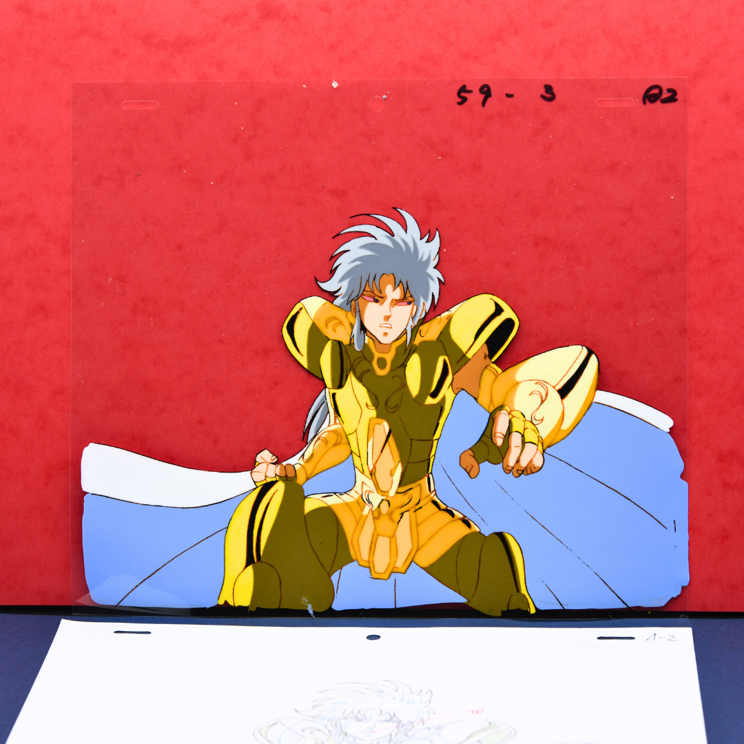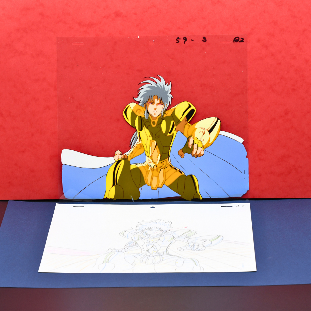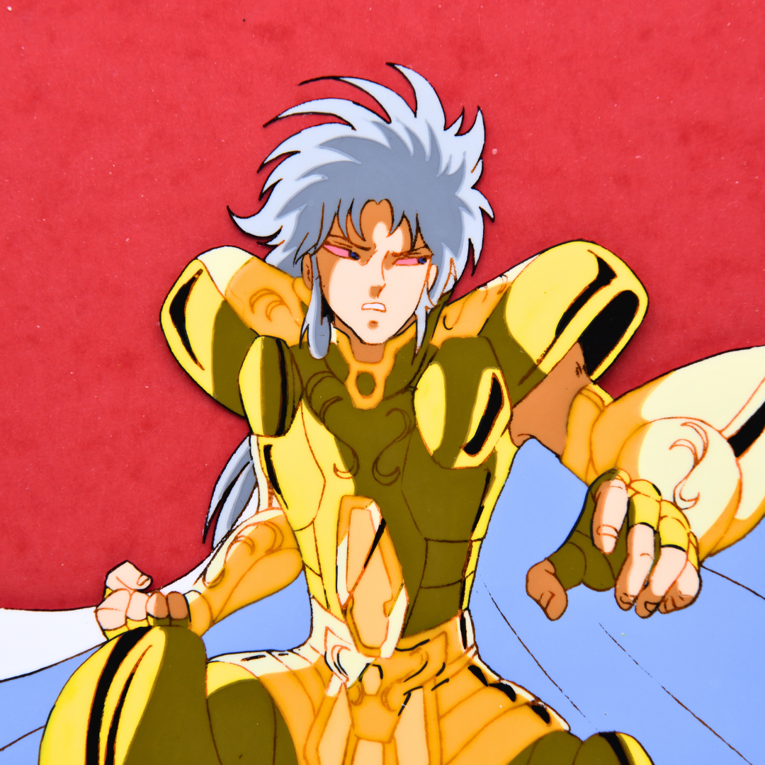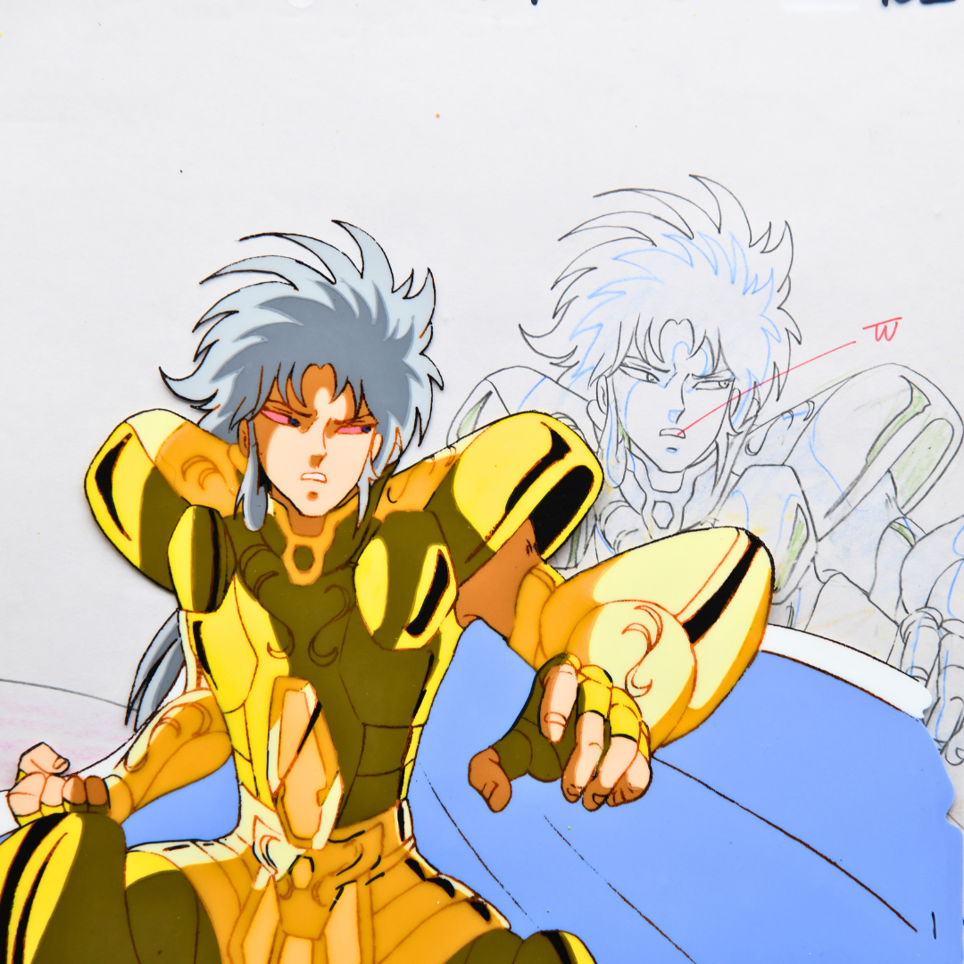 For any Saint Seiya fan, especially those who revere the Sanctuary Arc, this cel and douga from episode 72 is an extraordinary piece, marking the climactic end of the Gemini Saint's complex arc. His death not only brings closure to the conflict within the Sanctuary but also solidifies his place as one of the most compelling and tragic figures in the series. A true masterpiece for any collector.