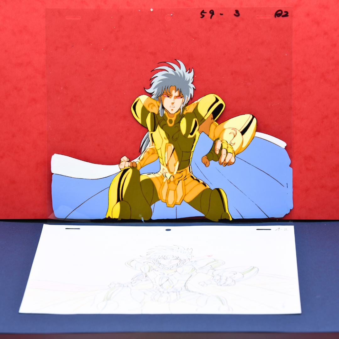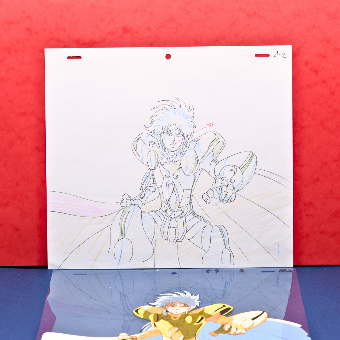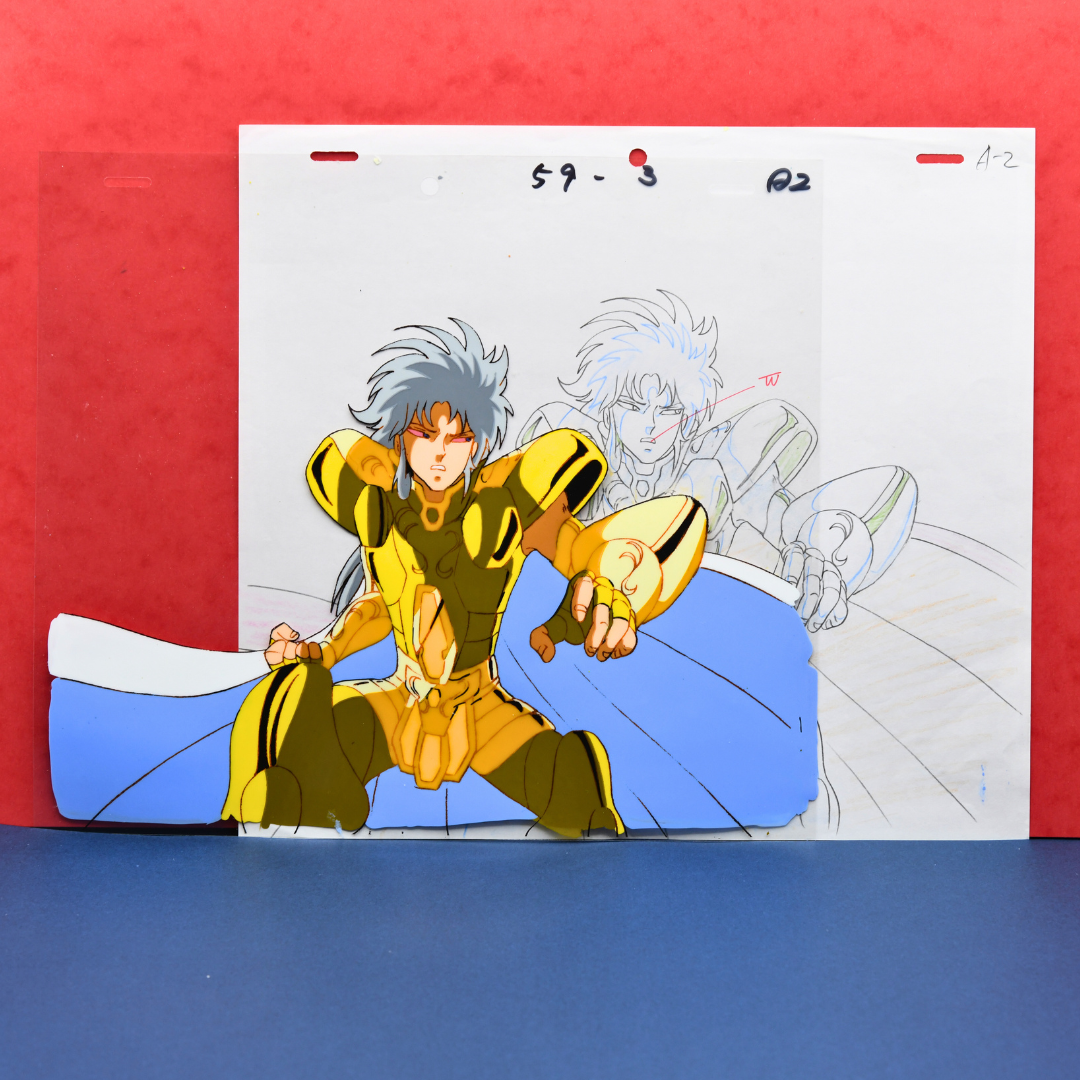 For any Saint Seiya fan, especially those who revere the Sanctuary Arc, this cel and douga from episode 72 is an extraordinary piece, marking the climactic end of the Gemini Saint's complex arc. His death not only brings closure to the conflict within the Sanctuary but also solidifies his place as one of the most compelling and tragic figures in the series. A true masterpiece for any collector.