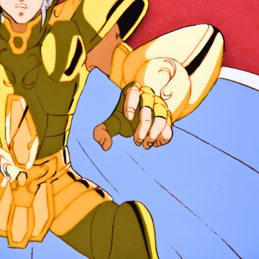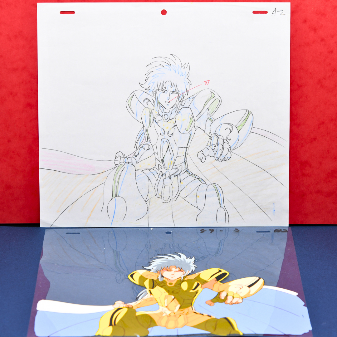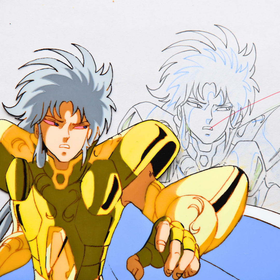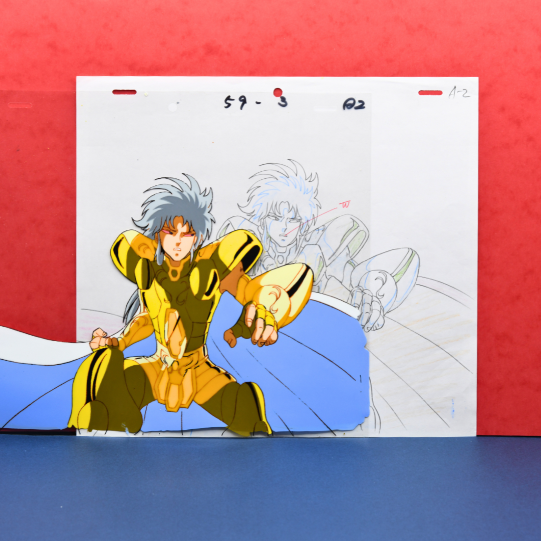 For any Saint Seiya fan, especially those who revere the Sanctuary Arc, this cel and douga from episode 72 is an extraordinary piece, marking the climactic end of the Gemini Saint's complex arc. His death not only brings closure to the conflict within the Sanctuary but also solidifies his place as one of the most compelling and tragic figures in the series. A true masterpiece for any collector.