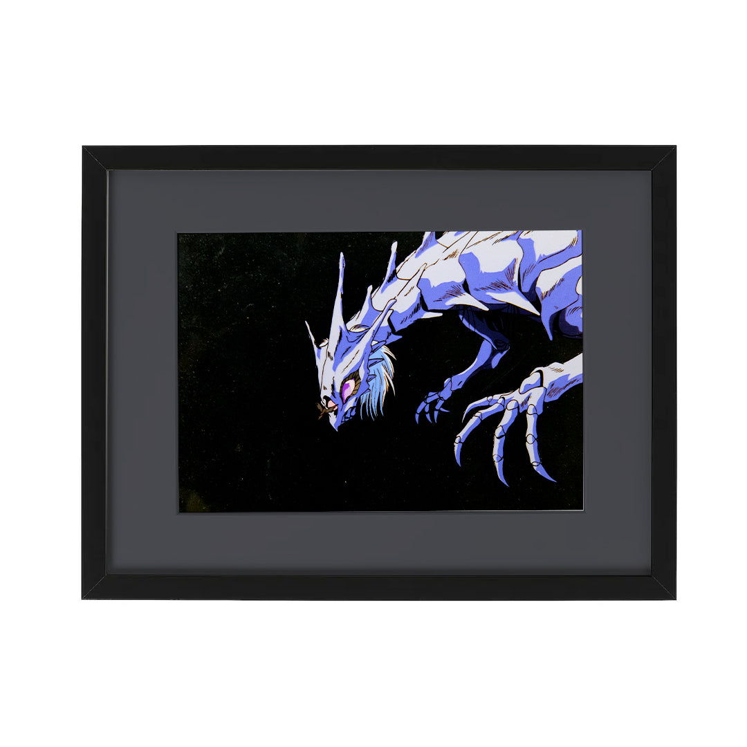 Step into the shadowy world of Demon Hunter Makaryuudo with this original production cel anime, featuring the striking Dragon Exoskeleton against a black backdrop. Adapted from the 80's manga by Keukegen, Studio Fantasia's 1989 OVA, directed by Yukio Okamoto, brings this gripping tale to life with vivid animation and intense storytelling. This artwork captures the essence of the series' dark aesthetic, inviting viewers to immerse themselves in its suspenseful narrative and supernatural battles.
